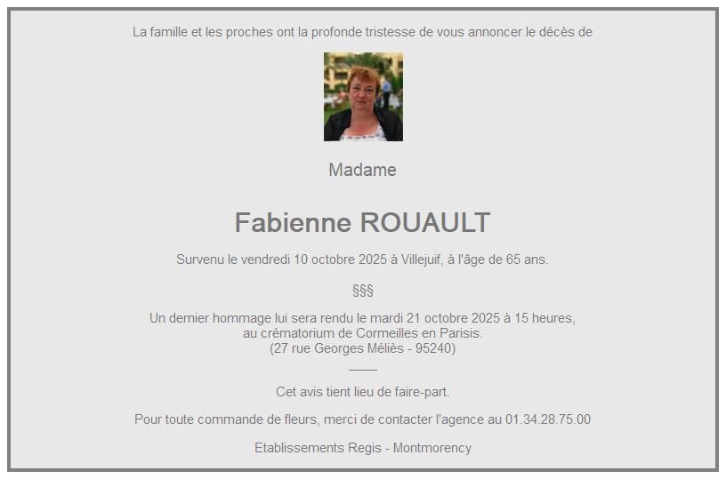 Cet espace « condoléances » est dédié à la mémoire de Madame Fabienne ROUAULT.