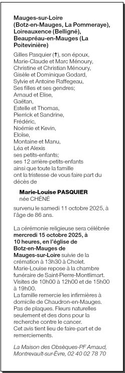 Décédée à Cholet (49300) le samedi 11 octobre 2025