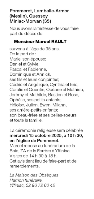 Décédé à Saint-Brieuc (22000) le vendredi 10 octobre 2025