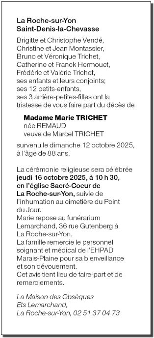 de Madame Marie TRICHET née REMAUD