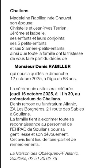 Cet espace « condoléances » est dédié à la mémoire de Monsieur Denis RABILLER.