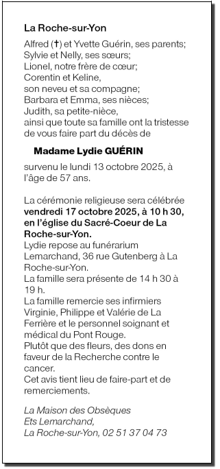 de Madame Lydie GUÉRIN