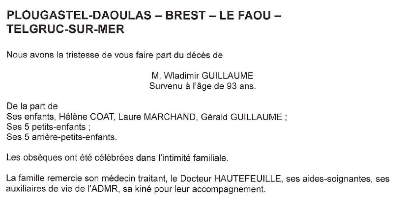 Cet espace « condoléances » est dédié à la mémoire de Monsieur Wladimir GUILLAUME.