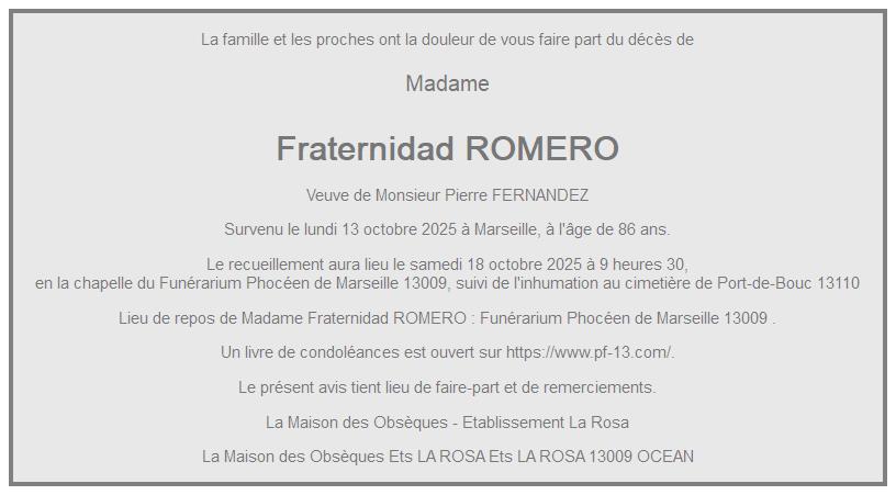 de Madame Fraternidad FERNANDEZ née ROMERO