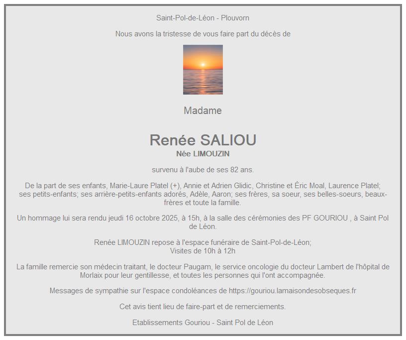 de Madame Renée SALIOU née LIMOUZIN