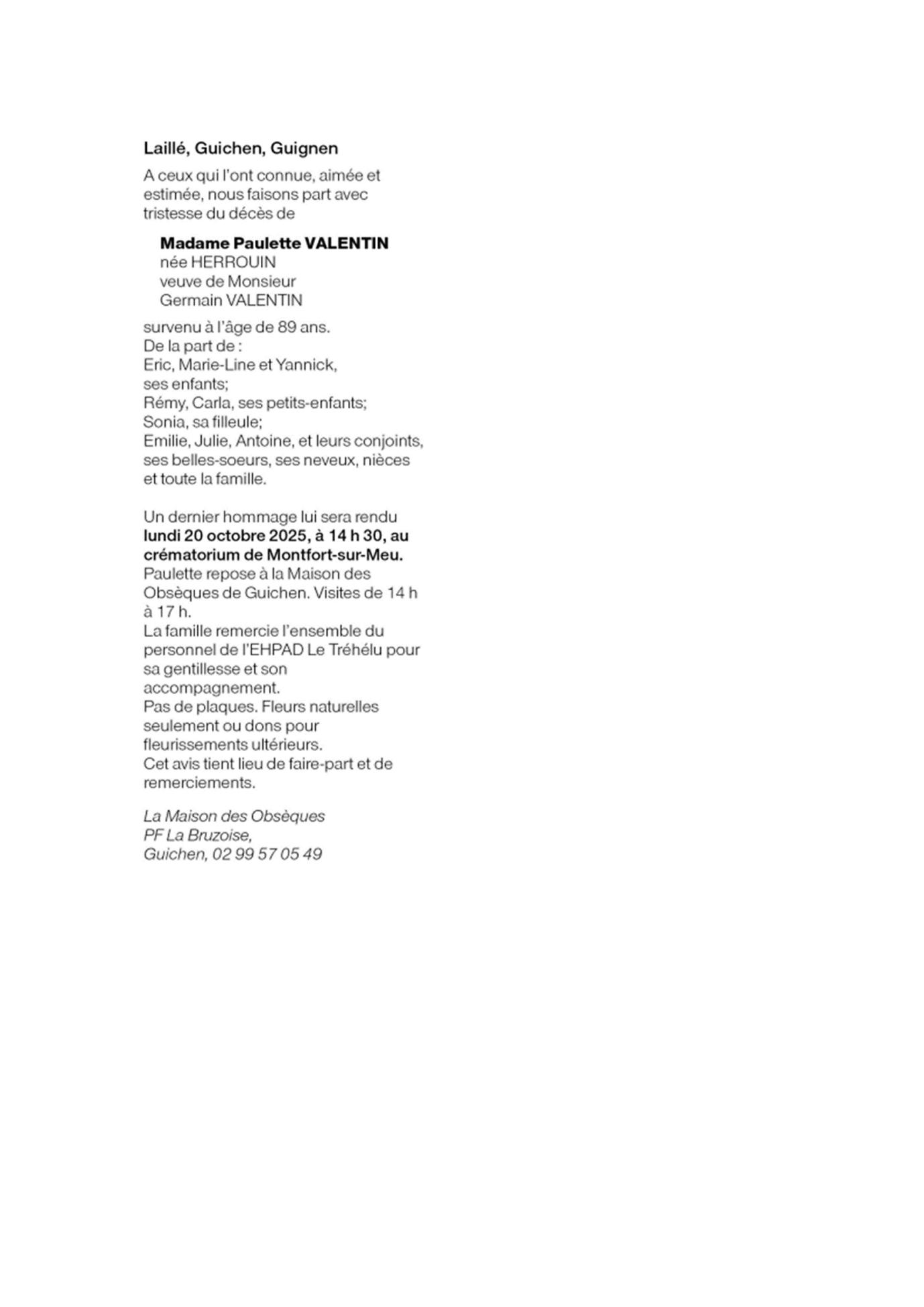 de Madame Paulette HERROUIN