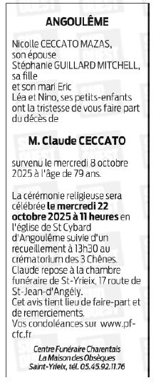 Décédé à Angoulême (16000) le mercredi 8 octobre 2025