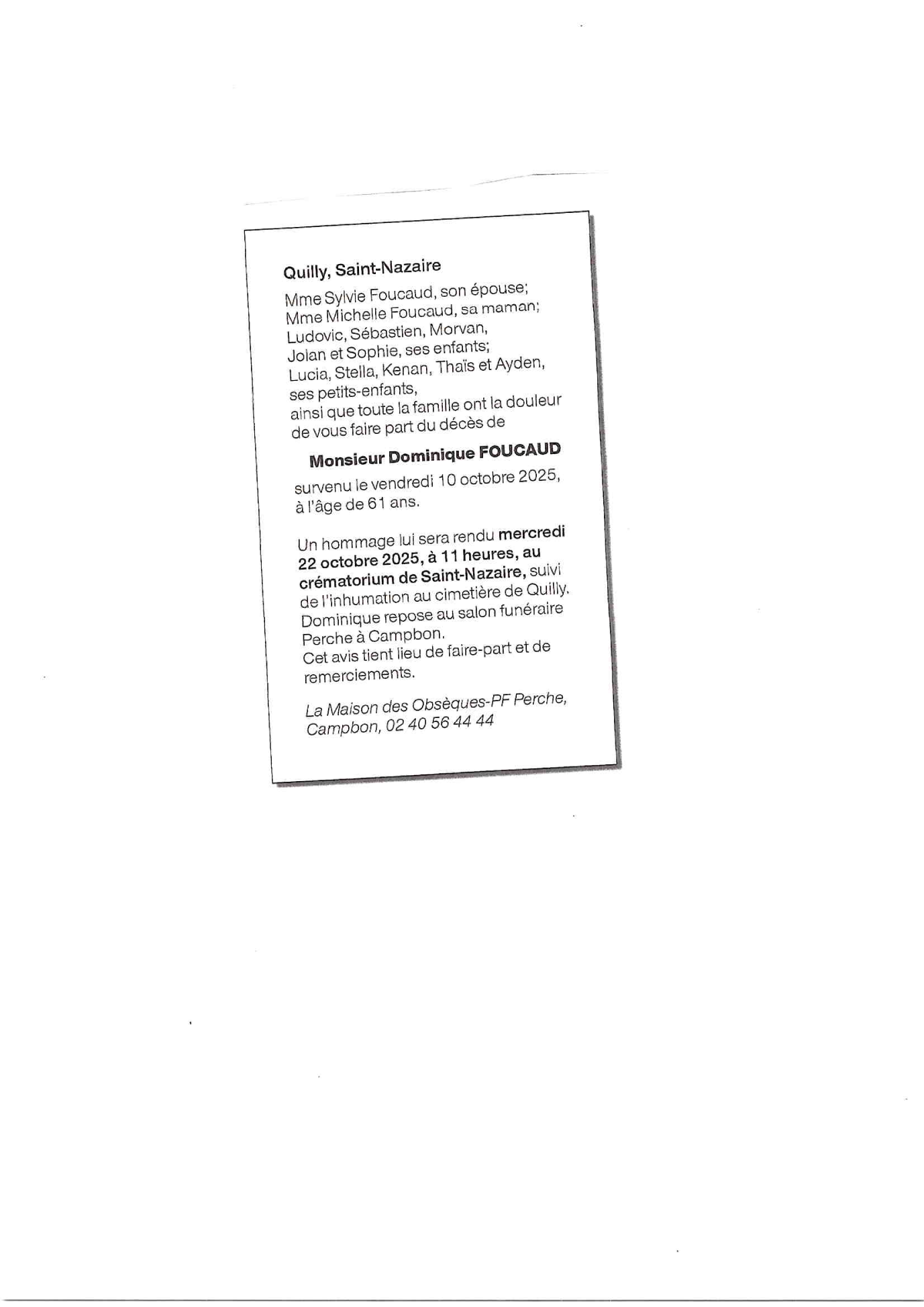de Monsieur Dominique FOUCAUD