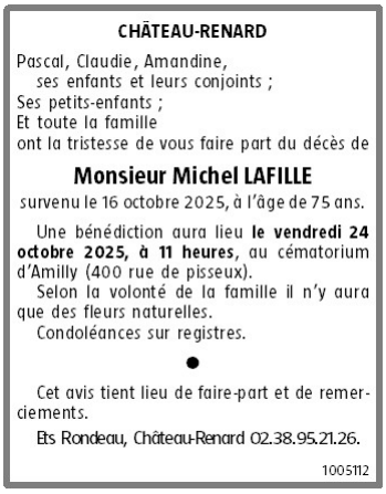 Cet espace « condoléances » est dédié à la mémoire de Monsieur Michel LAFILLE.