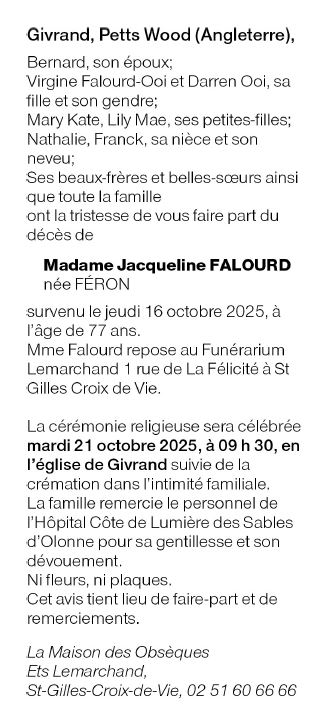 de Madame Jacqueline FALOURD née FÉRON