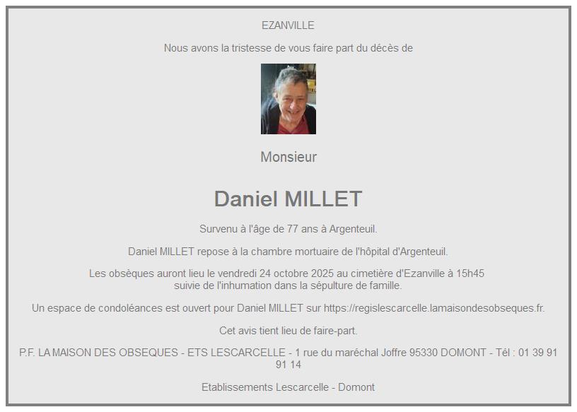Cet espace « condoléances » est dédié à la mémoire de Monsieur Daniel MILLET.