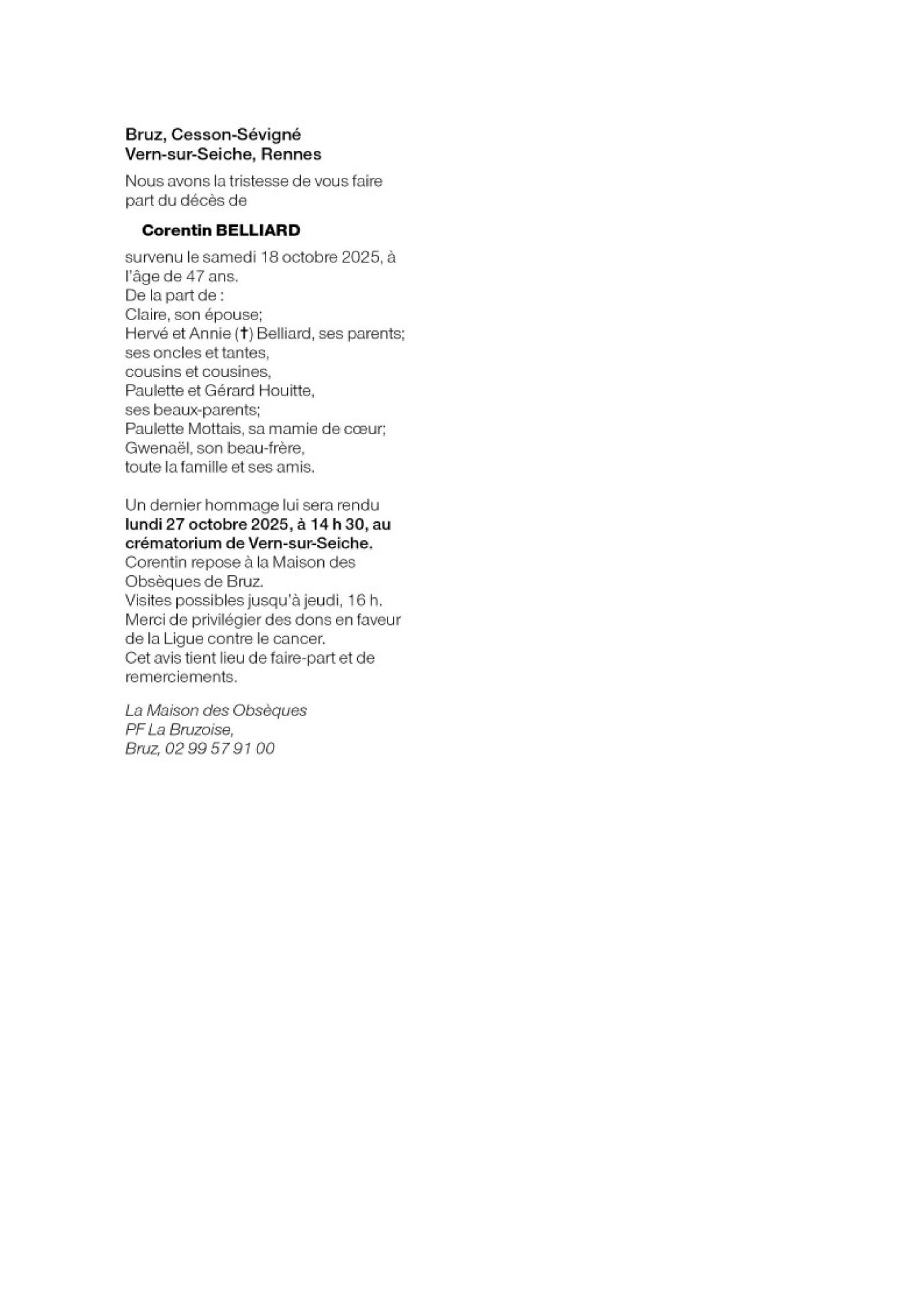 Cet espace « condoléances » est dédié à la mémoire de Monsieur Corentin BELLIARD.