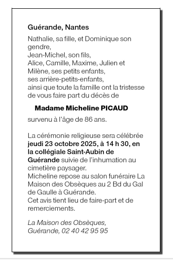 de Madame Micheline PICAUD née COPPOLA