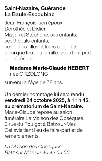 de Madame Marie-Claude HEBERT née ORZOLENC