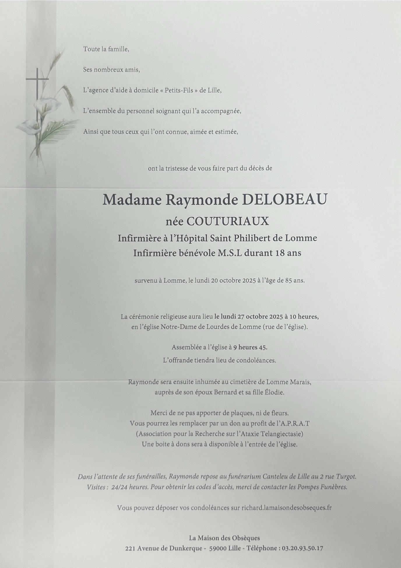 Décédée à Lomme (59160) le lundi 20 octobre 2025