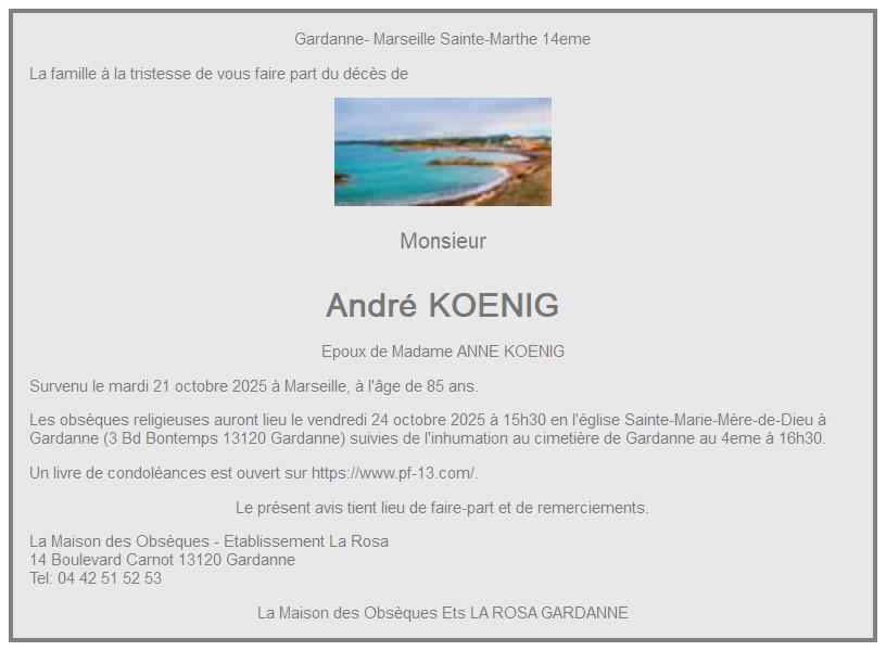 Cet espace « condoléances » est dédié à la mémoire de Monsieur André KOENIG.