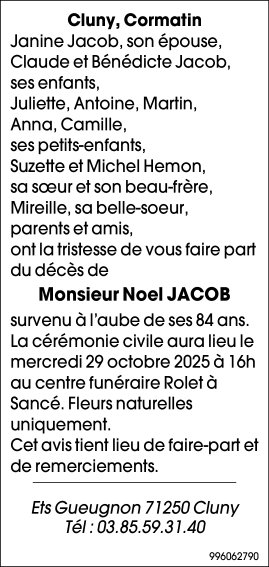 de Monsieur Noel JACOB