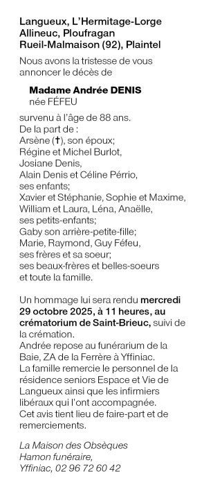 de Madame Andrée DENIS née FÉFEU