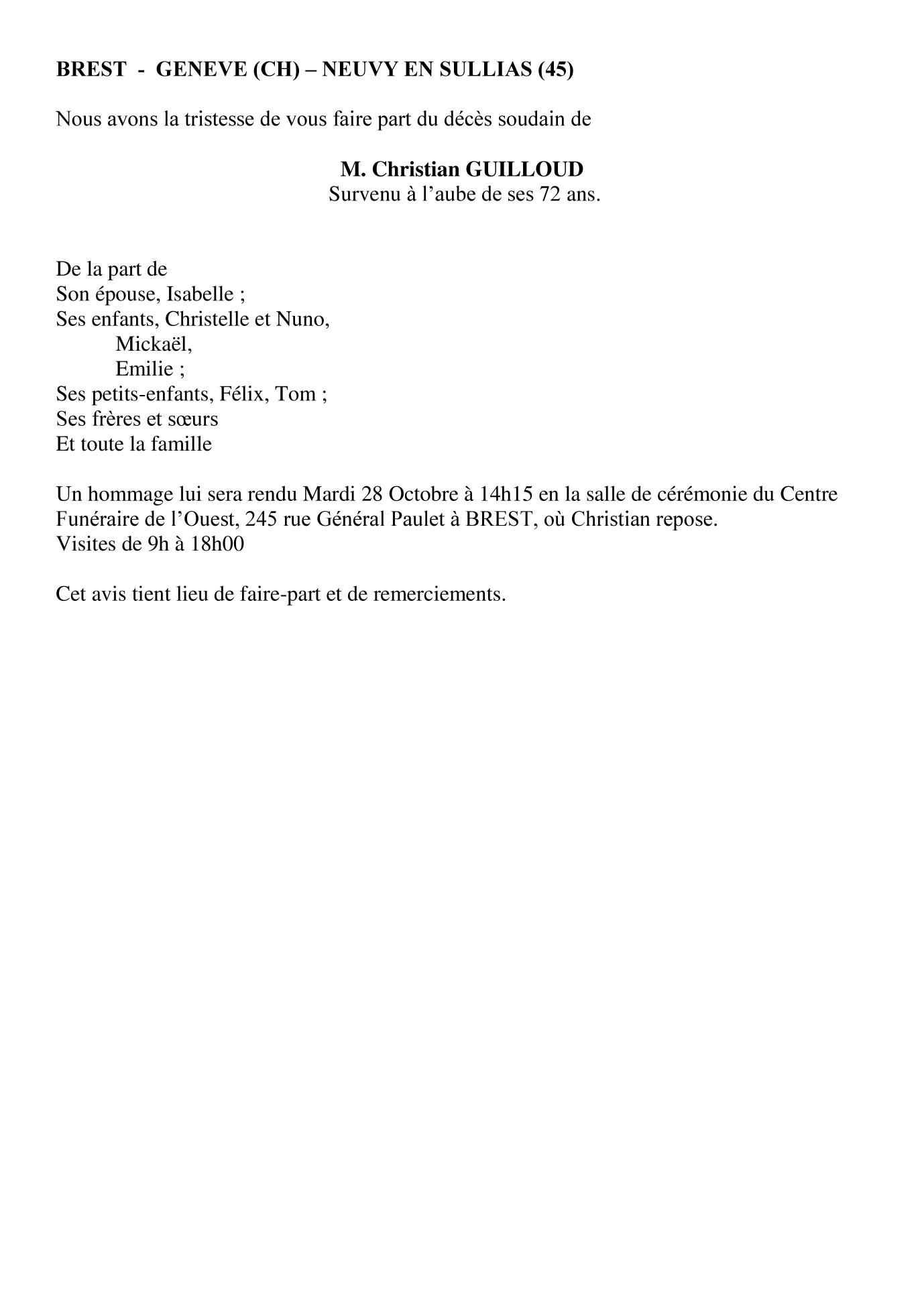de Monsieur Christian GUILLOUD
