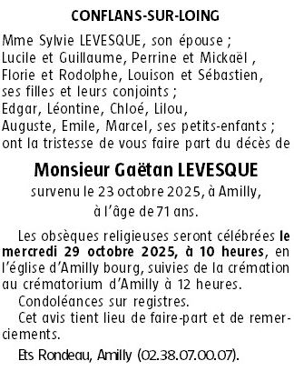 Cet espace « condoléances » est dédié à la mémoire de Monsieur Gaëtan LEVESQUE.