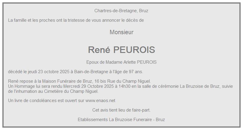 Cet espace « condoléances » est dédié à la mémoire de Monsieur René PEUROIS.