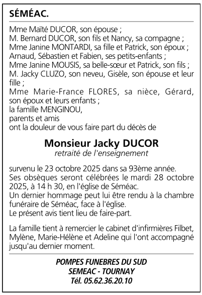 Décédé à Semeac (65600) le jeudi 23 octobre 2025
