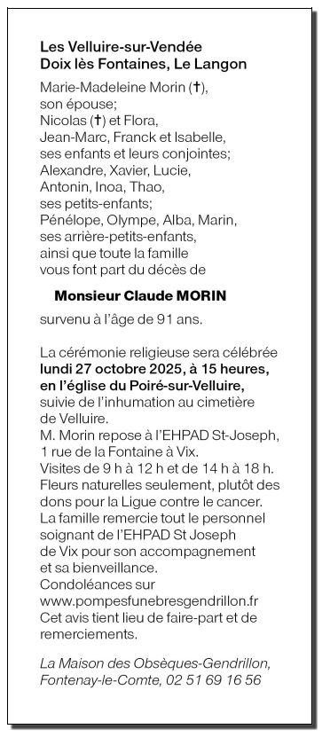 Décédé à Vix (85770) le vendredi 24 octobre 2025