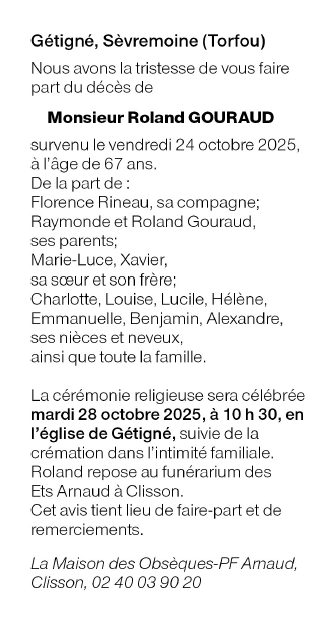 Cet espace « condoléances » est dédié à la mémoire de Monsieur Roland GOURAUD.
