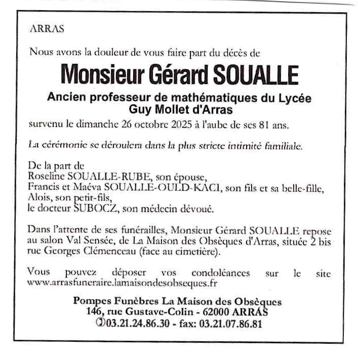 Cet espace « condoléances » est dédié à la mémoire de Monsieur Gérard SOUALLE.