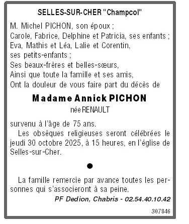de Madame Annick PICHON née RENAULT