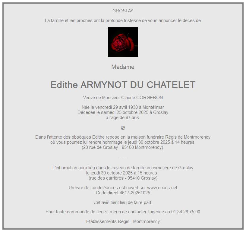 Décédée à Groslay (95410) le samedi 25 octobre 2025