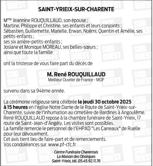 Cet espace « condoléances » est dédié à la mémoire de Monsieur RENÉ ROUQUILLAUD.