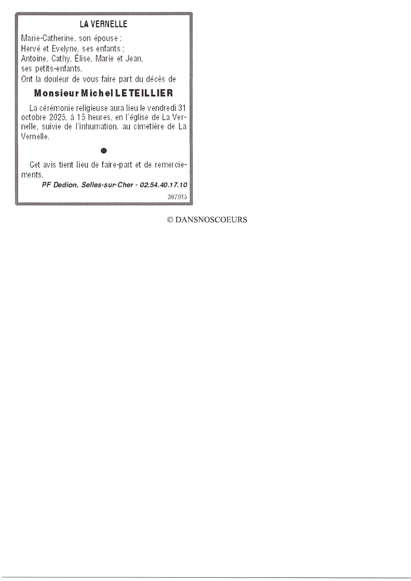 Domicilié à La Vernelle 36600