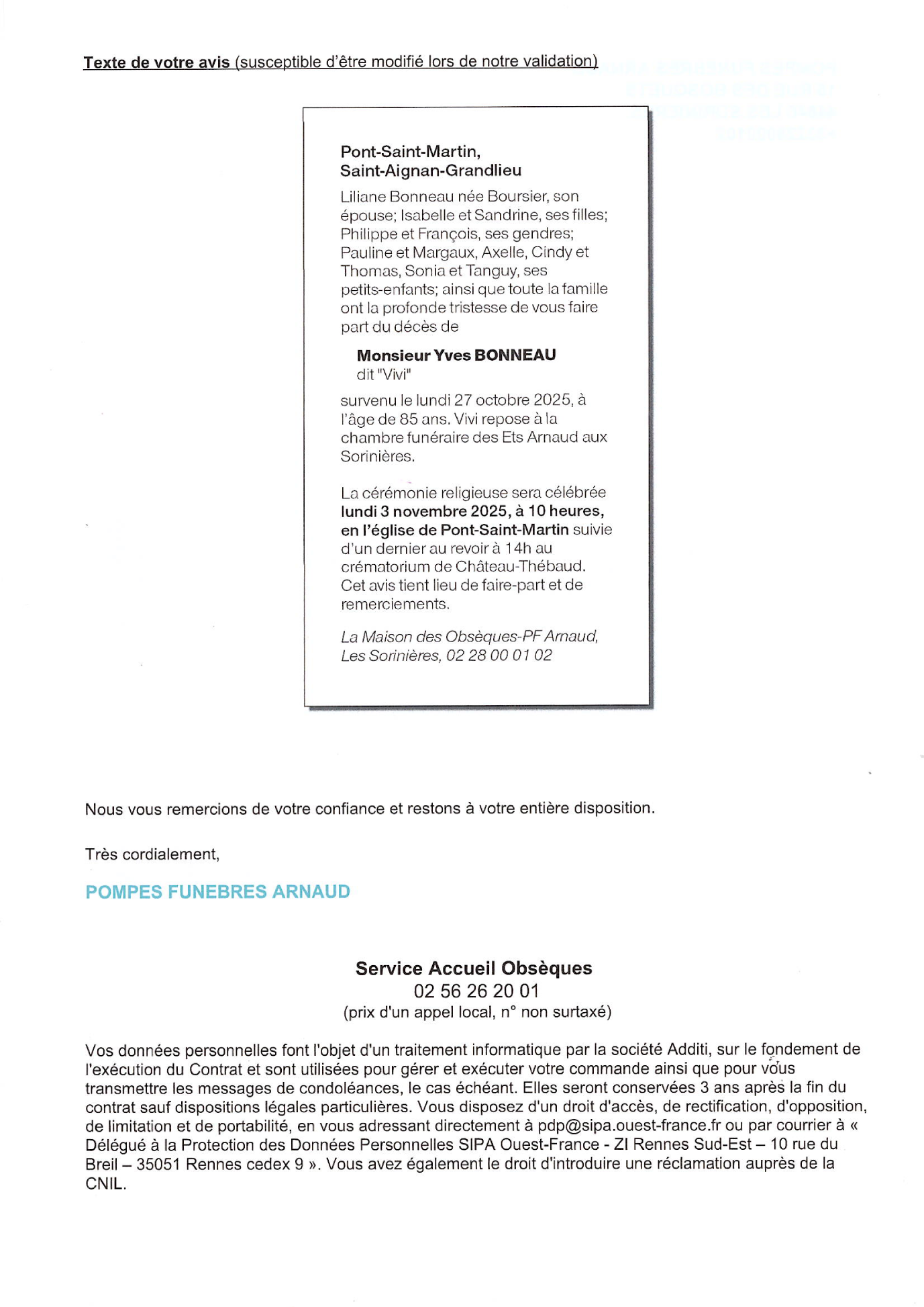 Cet espace « condoléances » est dédié à la mémoire de Monsieur Yves BONNEAU.