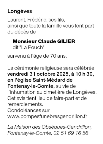Cet espace « condoléances » est dédié à la mémoire de Monsieur Claude GILIER.