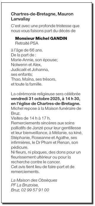 Cet espace « condoléances » est dédié à la mémoire de Monsieur Michel GANDIN.