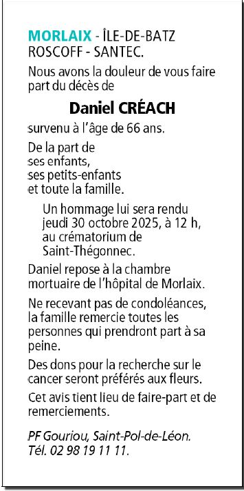 Cet espace « condoléances » est dédié à la mémoire de Monsieur Daniel CREACH.