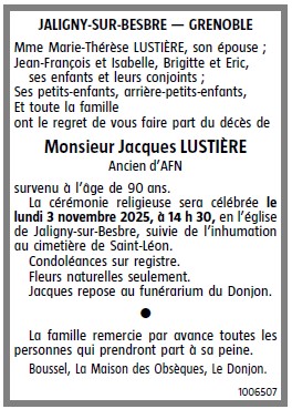 Cet espace « condoléances » est dédié à la mémoire de Monsieur Jacques LUSTIÈRE.