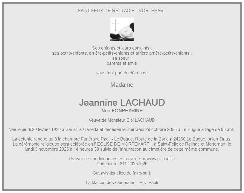 de Madame Jeannine LACHAUD née FONPEYRINE