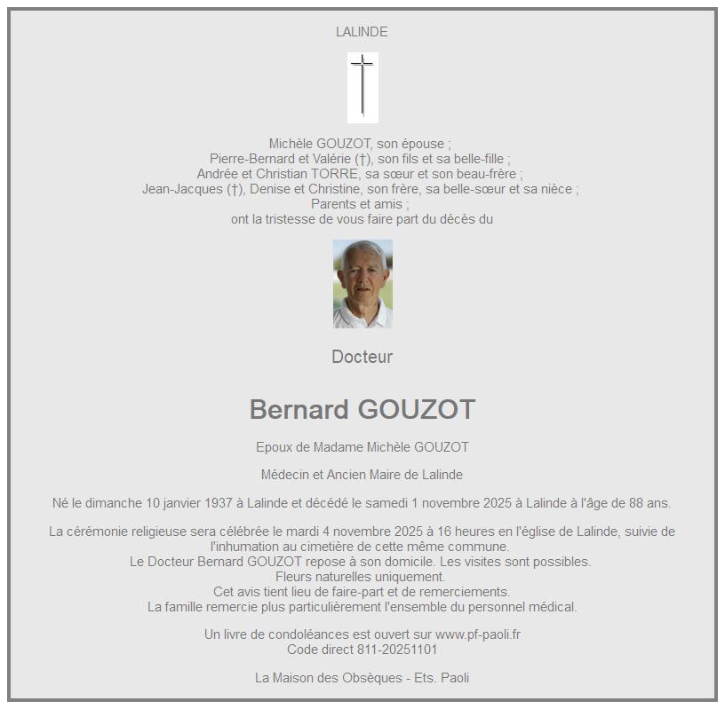 Cet espace « condoléances » est dédié à la mémoire de Docteur Bernard GOUZOT.