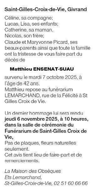 Cet espace « condoléances » est dédié à la mémoire de Monsieur Matthieu ENSENAT-SUAU.