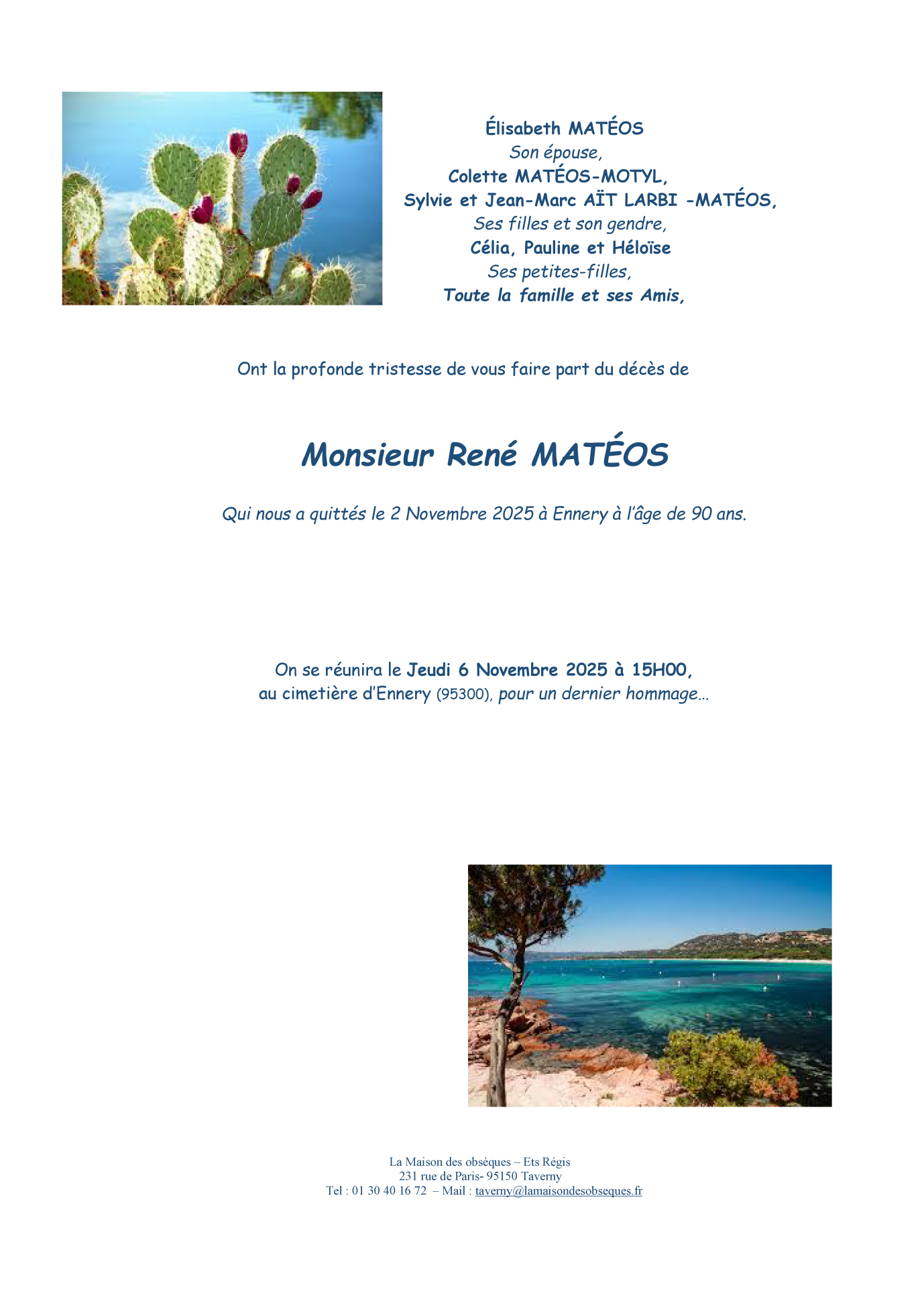 Cet espace « condoléances » est dédié à la mémoire de Monsieur René MATÉOS.