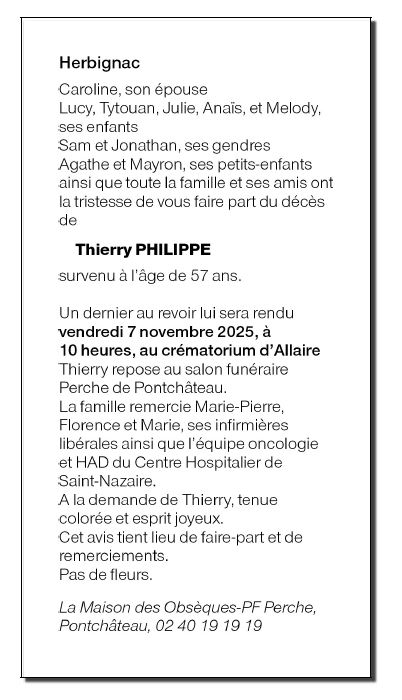 Cet espace « condoléances » est dédié à la mémoire de Monsieur THIERRY PHILIPPE.