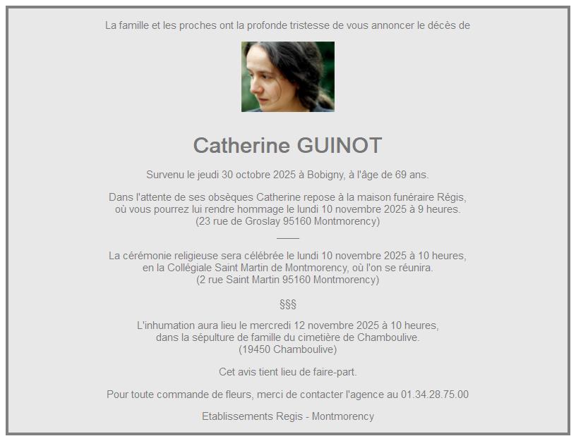 Cet espace « condoléances » est dédié à la mémoire de Madame Catherine GUINOT.