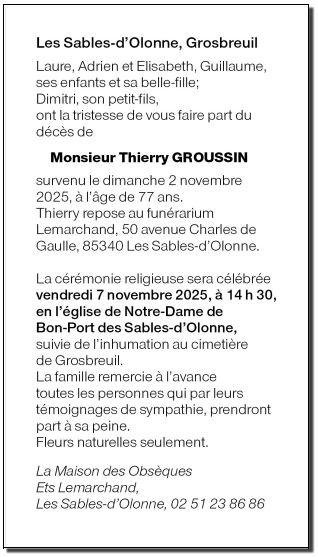 Cet espace « condoléances » est dédié à la mémoire de Monsieur Thierry GROUSSIN.