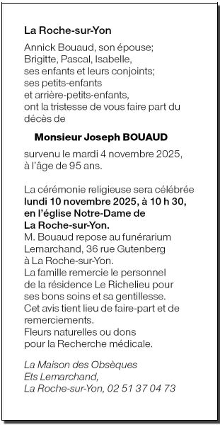 Cet espace « condoléances » est dédié à la mémoire de Monsieur Joseph BOUAUD.