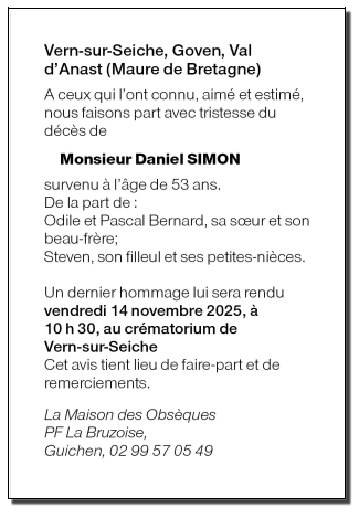 Décédé à Goven (35580) le mardi 4 novembre 2025