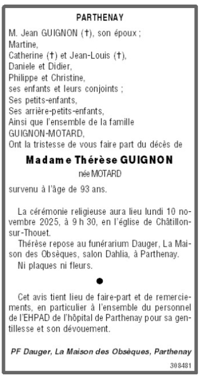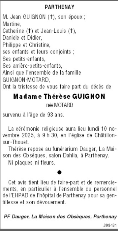 de Madame Thérèse GUIGNON née MOTARD
