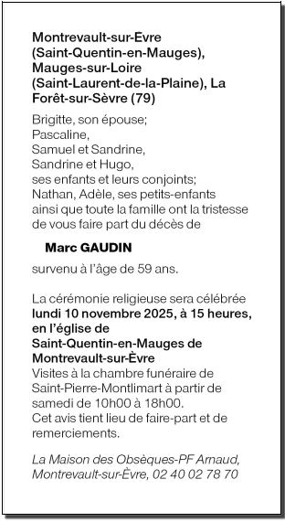 Cet espace « condoléances » est dédié à la mémoire de Monsieur Marc GAUDIN.