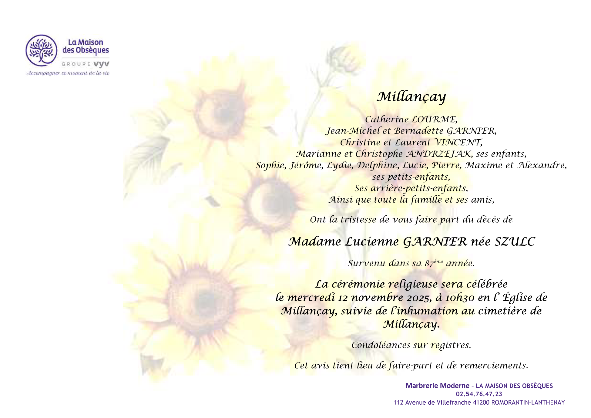 de Madame Lucienne GARNIER née SZULC